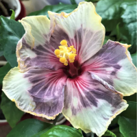 Растение имеет крупные сиреневые цветки с белой каймой, крапом и красной серединкой. Кроме необычных гигантских (до 25 см!) цветков у флоридских гибискусов более мощный куст: крупные, складчатые, округлые листья, толстый ствол.