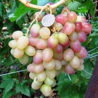 Грозди винограда Тасон имеют цилиндроконическую форму. Как правило, они cредней плотности, крупные, весом 500-800 г. В отдельных случаях вес грозди достигает 1200 г. Виноградины Тасона бело-розового цвета, на солнце приобретают загар, в тени не окрашиваются. На свету просвечивают и имеют красивый янтарный оттенок. Длина ягоды 24-25 мм, ширина – около 18 мм. Вес 6-7. Они имеют овальную форму, все примерно одного размера. Семечки мелкие, практически незаметные. Мякоть хрустящая, сочная; кожица в меру плотная, при поедании не ощущается. Вкус очень приятный, гармоничный, сладкий с заметной мускатной нотой.