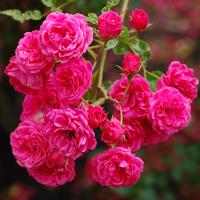 Куст 150-200 см высотой, с зелеными, блестящими листьями. Цветки мелкие, около 4 см в диаметре, махровые (48 лепестков), собраны в очень густые соцветия по 10-20 шт., ароматные. Зимостойкий сорт.